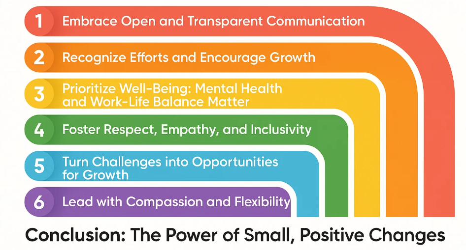 The good news is that creating a positive work environment doesn’t require sweeping changes or grand gestures. In fact, it’s often the small things—clear communication, recognition, empathy, and a focus on well-being—that have the biggest impact. By fostering a culture of respect, collaboration, and mutual support, we can create workplaces where everyone feels empowered, valued, and motivated to do their best work.